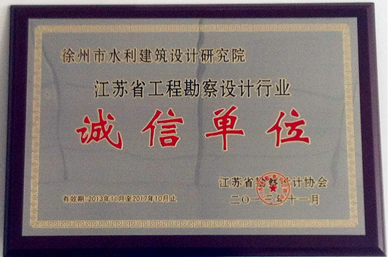 日前,江蘇省勘察設計協(xié)會(huì )組織開(kāi)展的 “江蘇省勘察設計行業(yè)誠信單位”評選結果揭曉,我院再次獲得“江蘇省勘察設計行業(yè)誠信單位”榮譽(yù)稱(chēng)號。